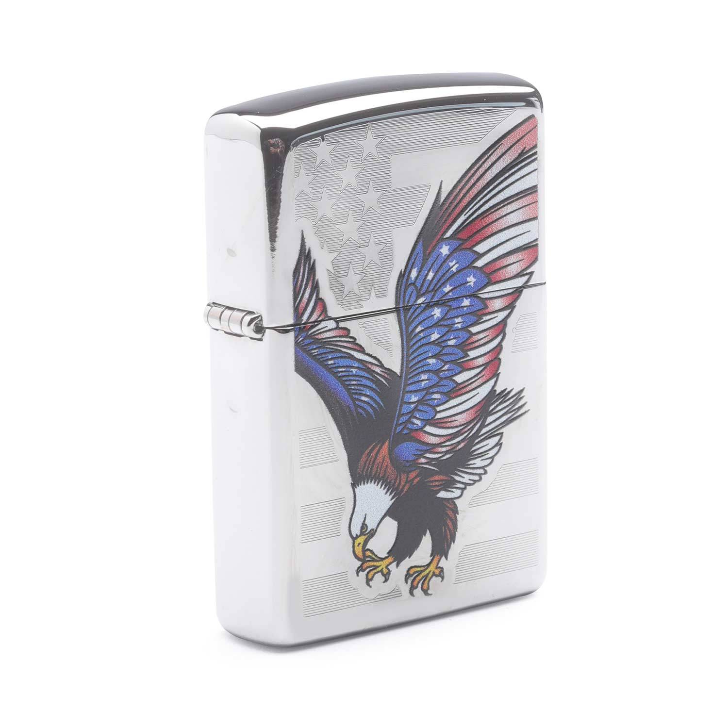 Eagle with American Flag Overlay Chrome Windproof Lighter Zippo